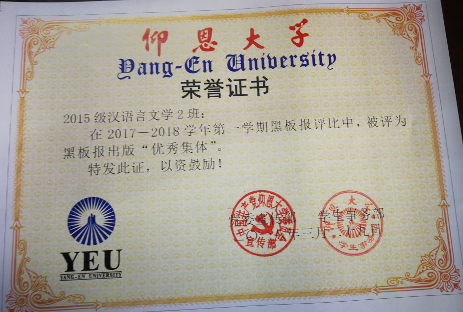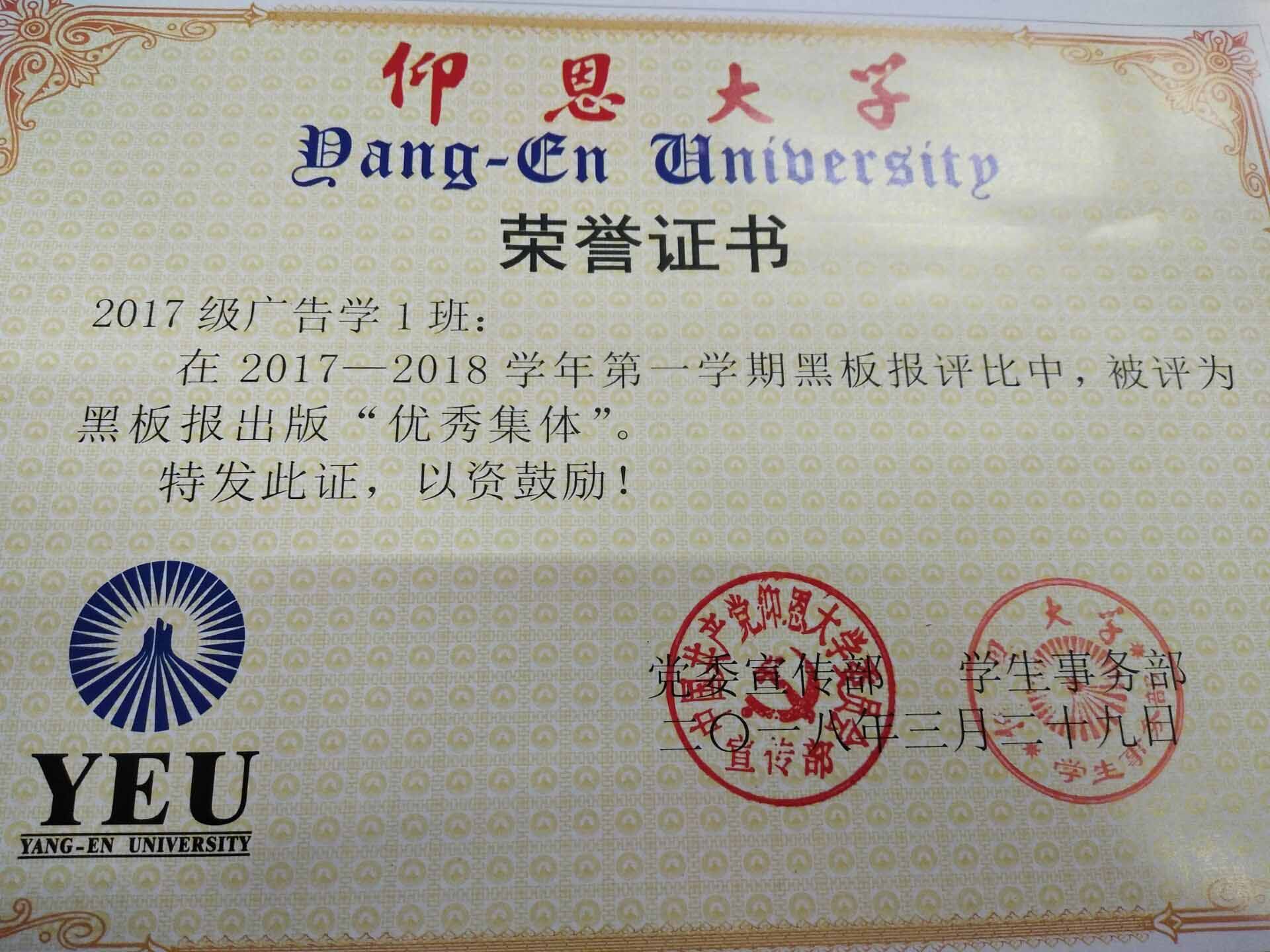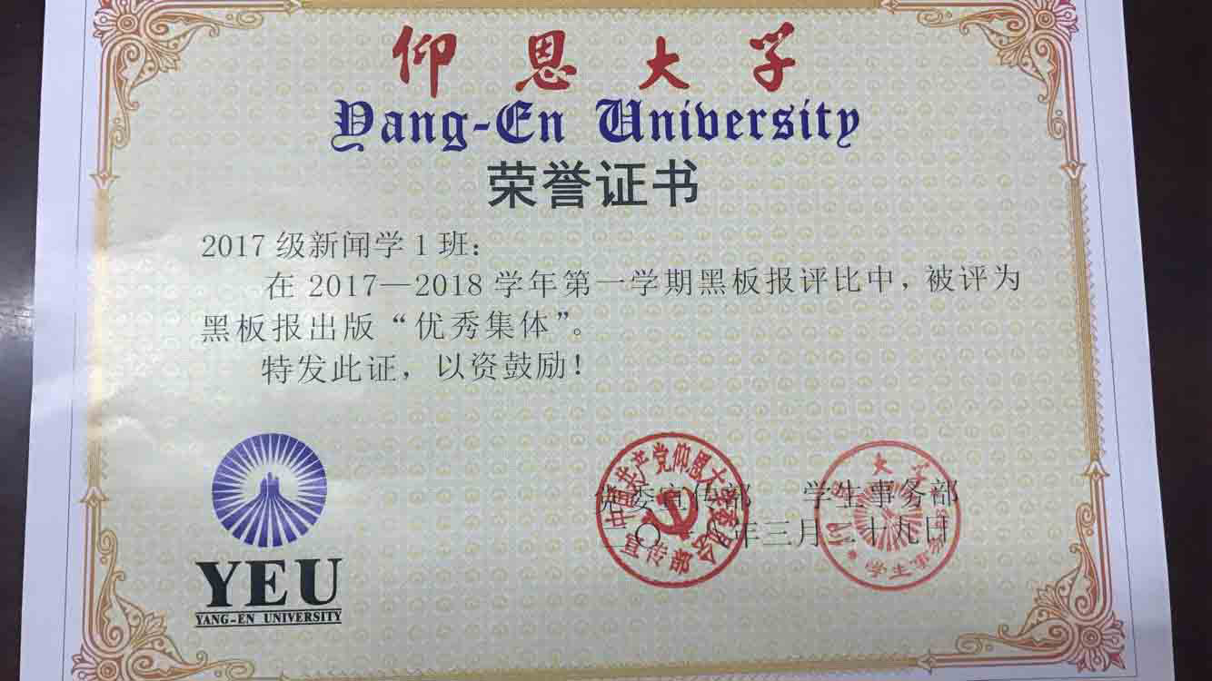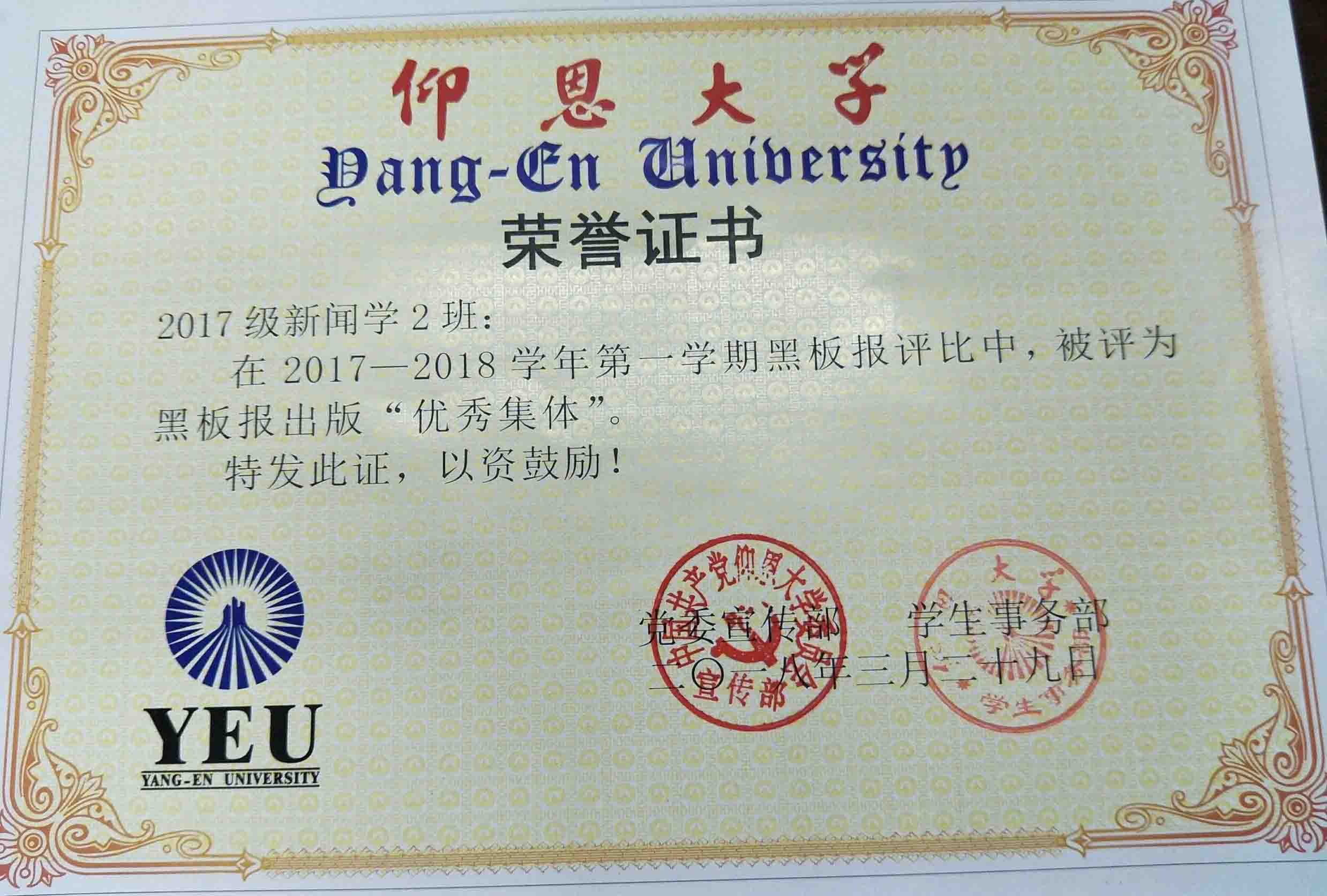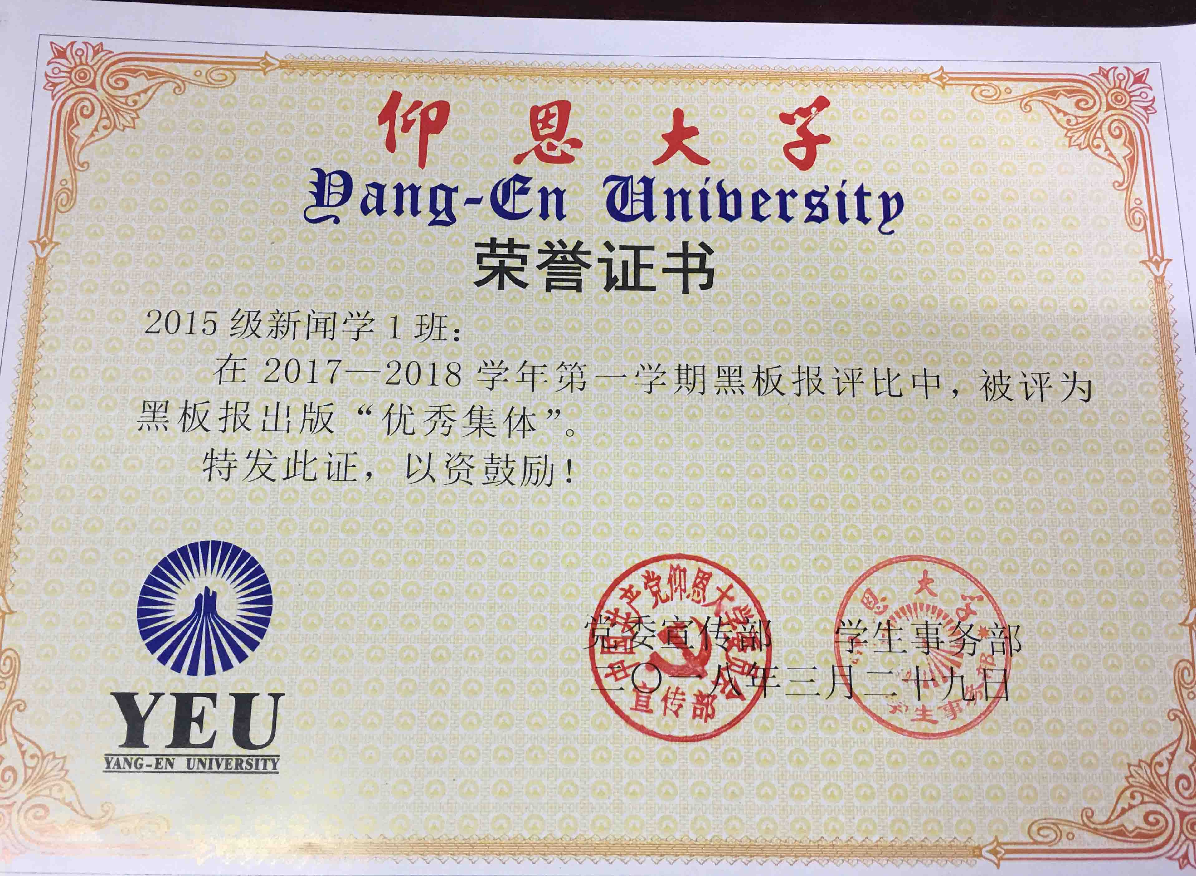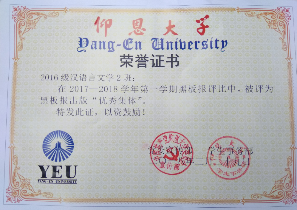 在2017—2018学年第一期黑板报评比中,beat365官方网站有5个班级被评为黑板报出版“优秀集体”,他们分别是15新闻学1班、15汉语言文学2班、16汉语言文学1班、16汉语言文学2班、17新闻学1班、17新闻学2班、17广告学1班。