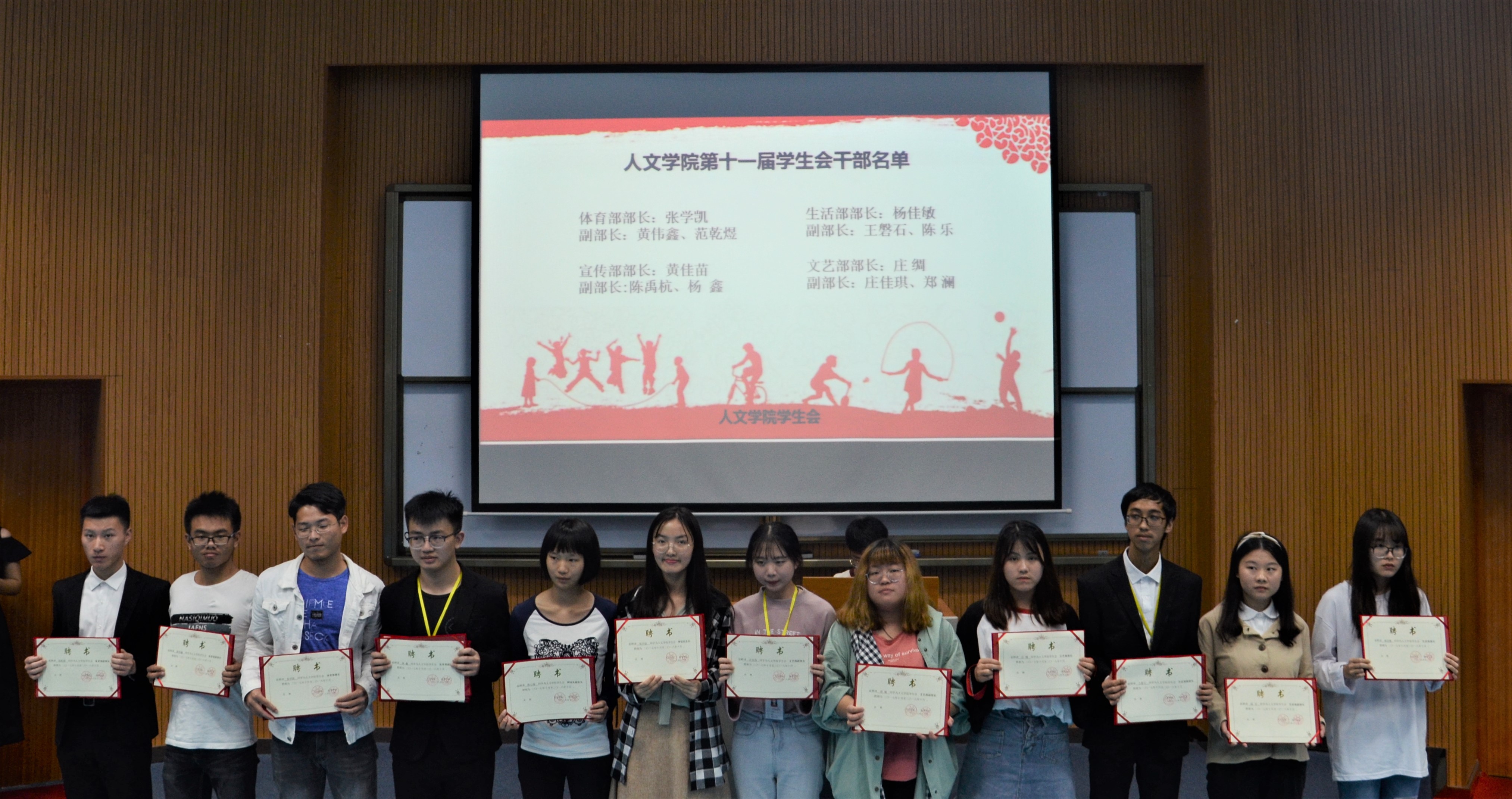 运动员代表冯钰银发言 林奇鹏、吕淑滟、黄佳苗等数名干部荣获beat365官方网站学生会2016-2017学年先进个人称号;体育部及生活部荣获“学生会2017-2018学年优秀部门”称号,老师们为优秀个人和集体颁发奖状,并为第十一届全体学生会干部颁发聘书。