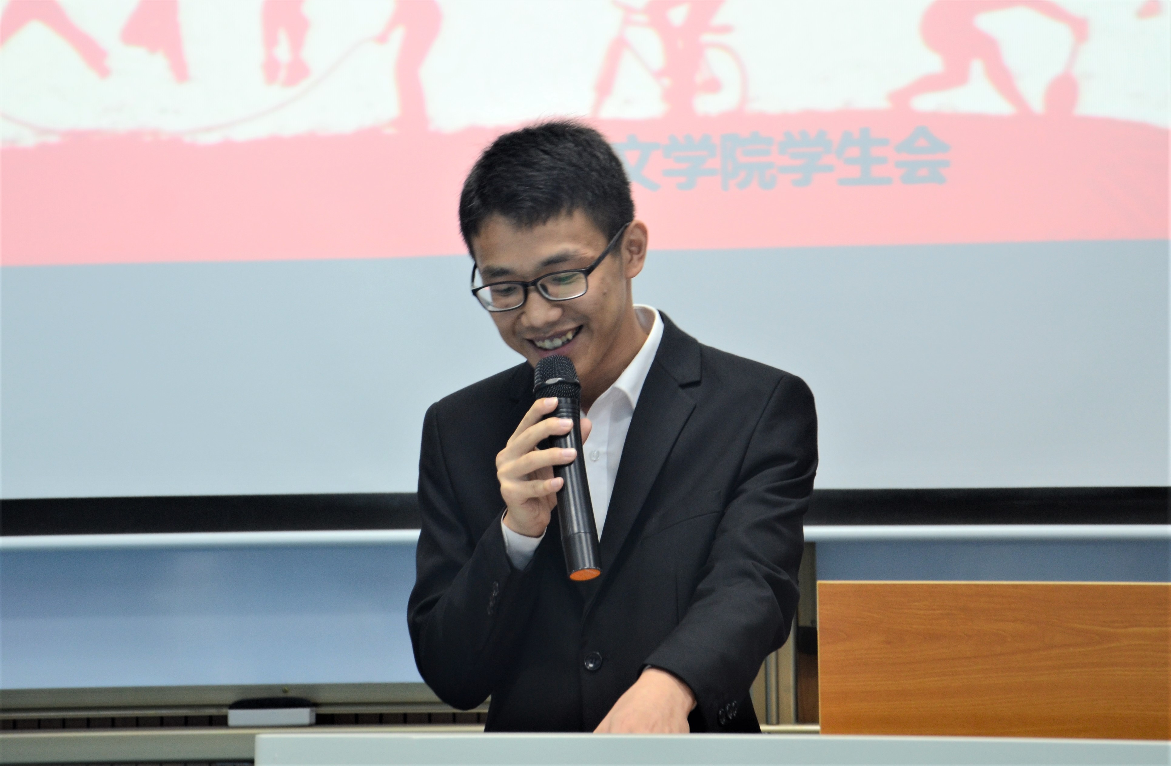颁奖环节 第十一届学生会主席吴志伟发言,回顾了自己当时加入学生会的初心,总结了本届学生会干部在本次校运会等学院工作中的辛苦付出,希望新一届干部接好这一棒,心中有人文情怀,脚踏实地工作。
