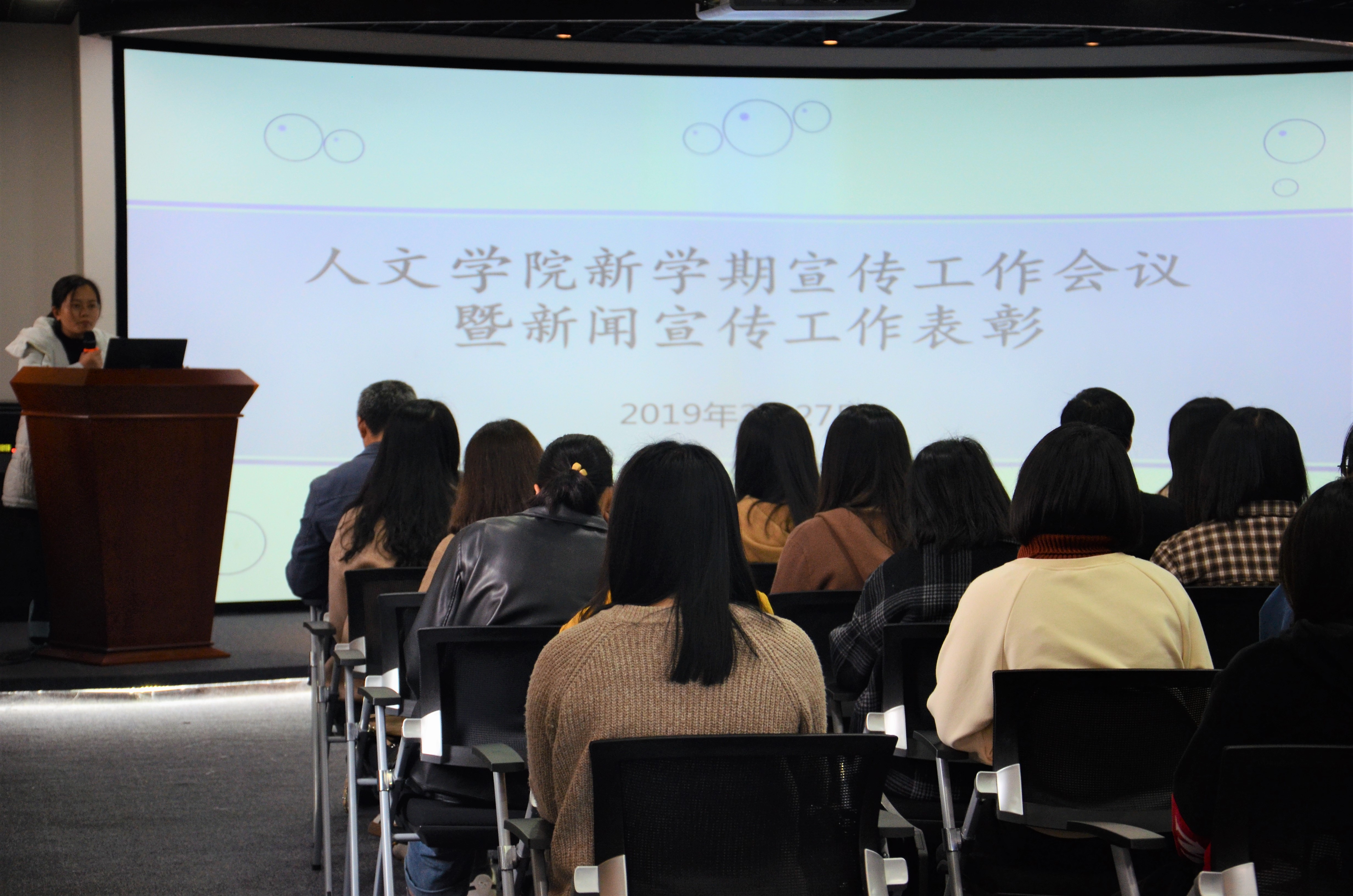 颁奖现场 刘巧玫老师对新学期的宣传工作以及新媒体团队建设进行部署,并表示:“希望同学们能够结合专业所学在宣传工作中,大胆创新,提高写作、采访、摄影、沟通、平台编辑等各方面技能。树立大宣传理念,举全院之力,做好宣传工作”。