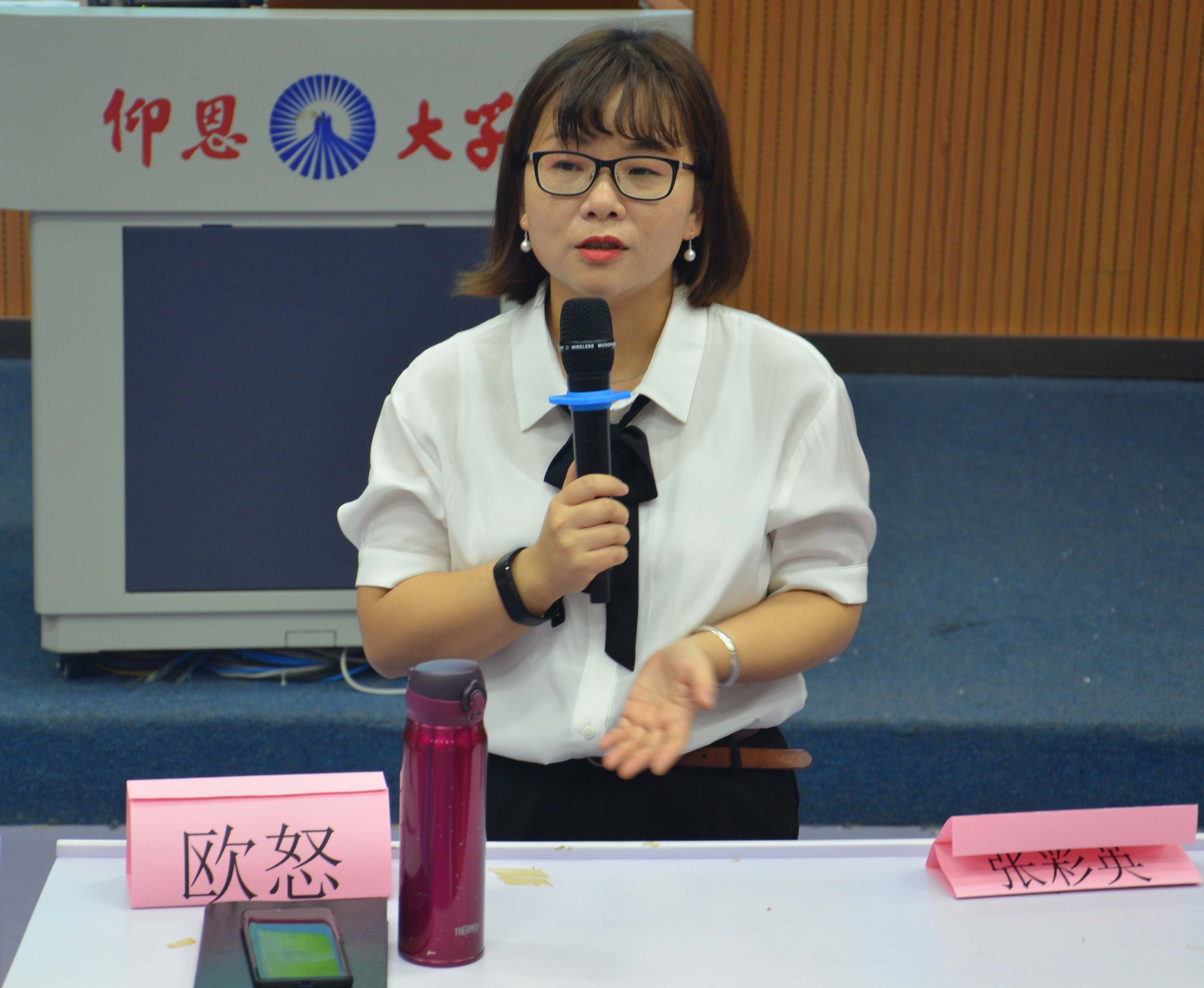 欧怒老师对新生们提出了三点期望,一是热爱祖国,志存高远,告诉新生们仰恩大学是爱国华侨吴庆星先生开山劈岭、筚路蓝缕兴建的大学,传承弘扬爱国主义精神,是仰恩学子的精神,并以“取法乎上,得乎中;取法乎中,得乎下”激励新生们把学习目标定高一点;二是脚踏实地、锐意进取,提醒新生们大学是人生进阶的最佳时机要制定好计划,一步一步去落实;三是思想健康、积极乐观,鼓励新生们要不断汲取正能量,与负面情绪做斗争,成为一个乐观的人,美好的人。