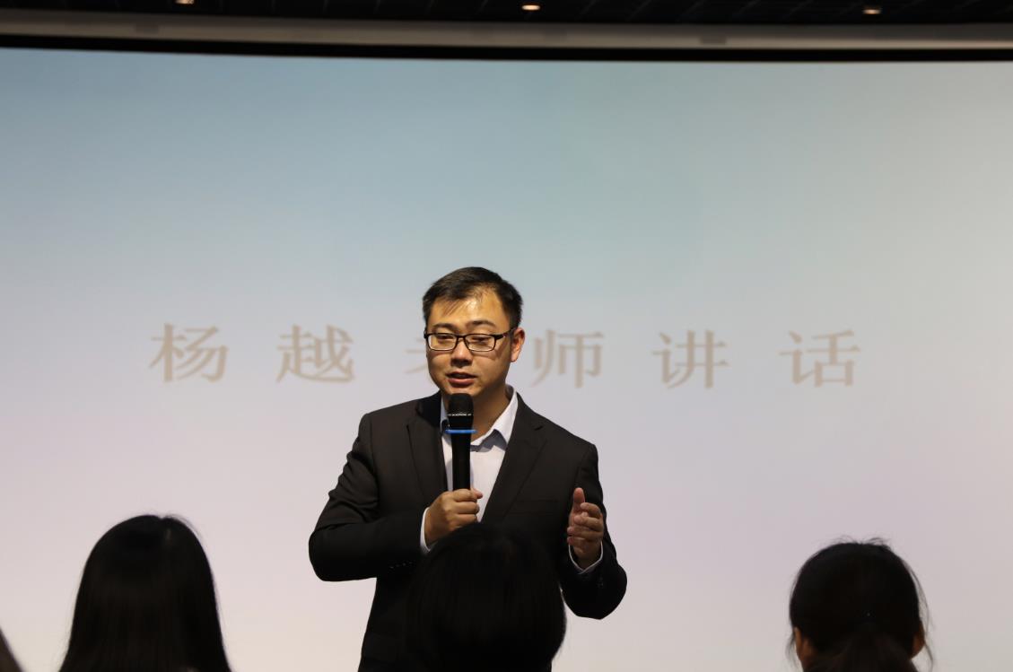 随后,院新媒体中心指导老师杨越进行总结发言。杨越老师对院新媒体中心的工作做出了方向性的指导。首先,杨越老师指出学生干部需要发挥并加强自己的带动能力、组织活动能力以及起优秀的榜样作用;其次,杨老师也对新生干事提出要求,希望大家可以积极参加接下来的各种活动,敢于挑战;最后,杨老师对院新媒体中心接下来的工作做出了规划,希望各部门可以互相帮助、不断协调,完成优秀的团队合作,再利用多种形式的宣传方式,来加强学院宣传的力度。