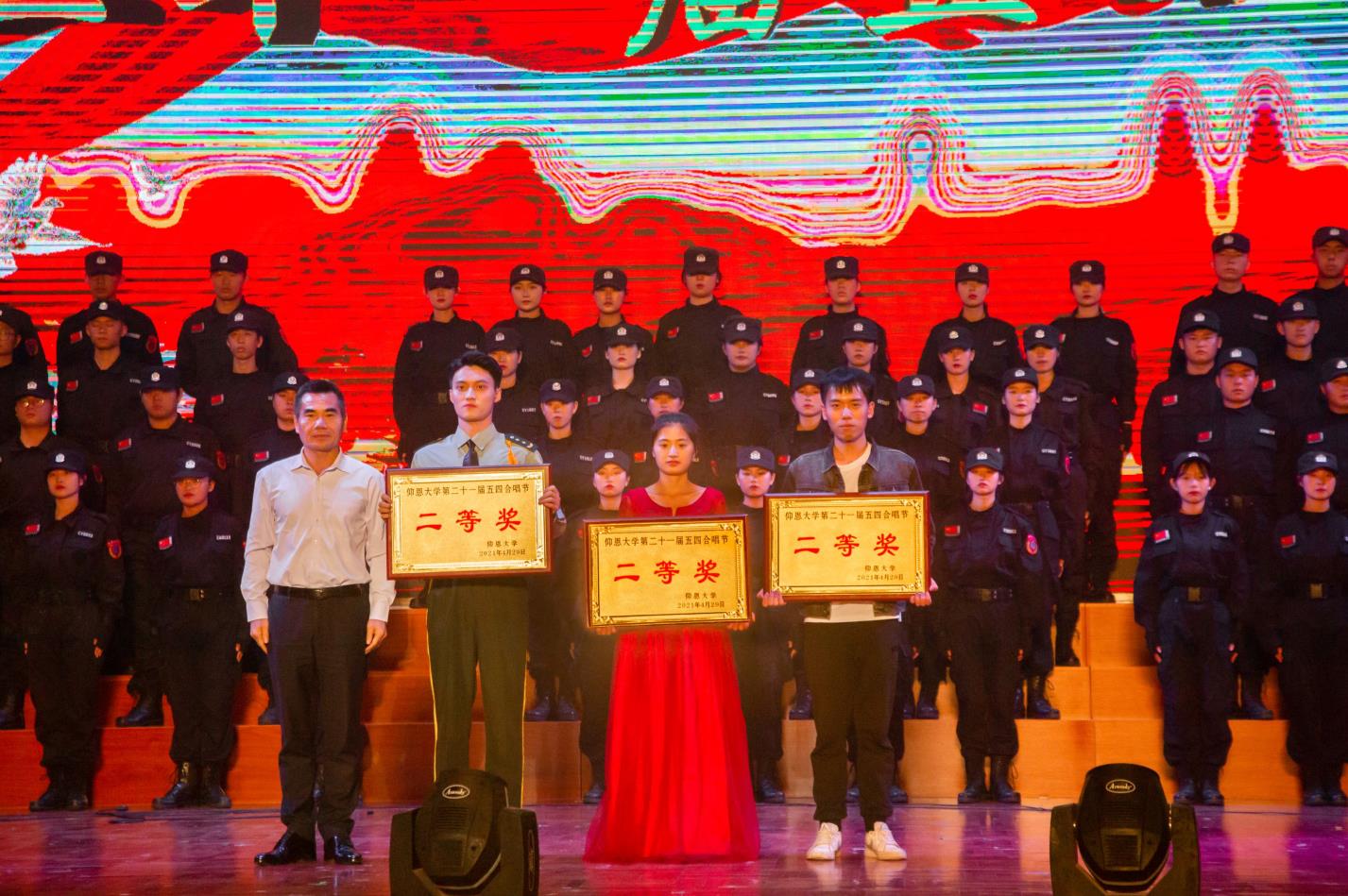 4月29日晚,仰恩大学普照大礼堂隆重举行仰恩大学第二十一届爱国五四合唱比赛。由beat365官方网站大一学生组成的beat365官方网站一队和大二学生组成的beat365官方网站二队参与了此次的比赛。在beat365官方网站师生共同的努力下,beat365官方网站一队荣获比赛二等奖,二队荣获比赛三等奖。