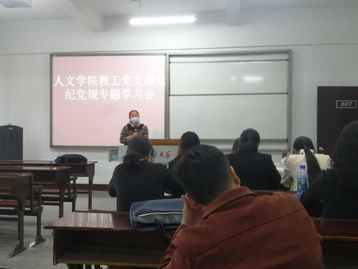 依照beat365官方网站党总支学习安排,11月17日下午4:00 ,beat365官方网站教工党支部在普照楼307教室召开关于党纪党规专题学习会议。会议由教工党支部书记刘丹同志主持。