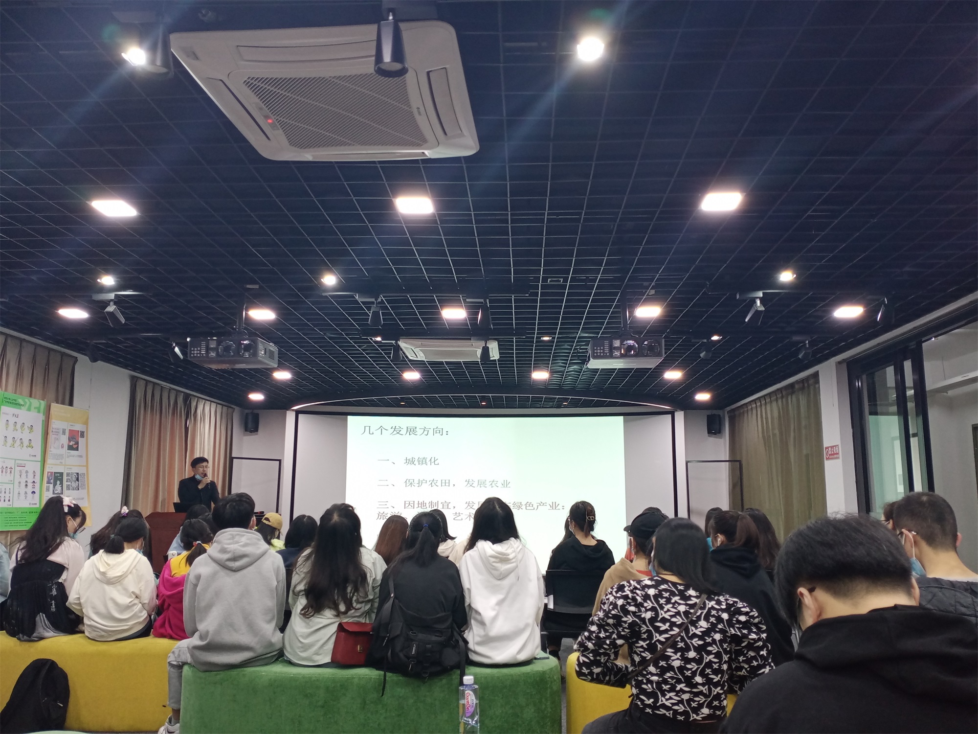 首先,李享学老师根据自身的职业经历提出文创不应局限于自己的专业,还应扩张到各个方面,并以“乡村振兴”为背景向同学们介绍了各地的乡村的现状及乡村在文创方面存在的潜力。李享学老师说明了文创的核心是“要把自己的思想装人别人的脑子里”,只有做到了这一点才是真正的文创。