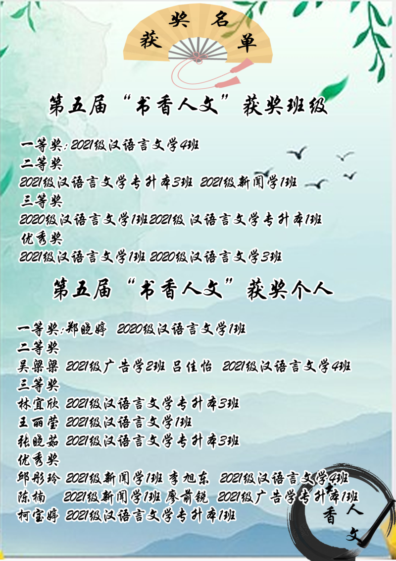 活动过程中各班级参与度高,氛围感强,线上通过飞花令、翻拍经典文学场景、看甲骨文猜汉字等创意活动形式交流汇报读书学习成果。经过激烈的角逐,最终产生了团体奖7名,个人奖11名。