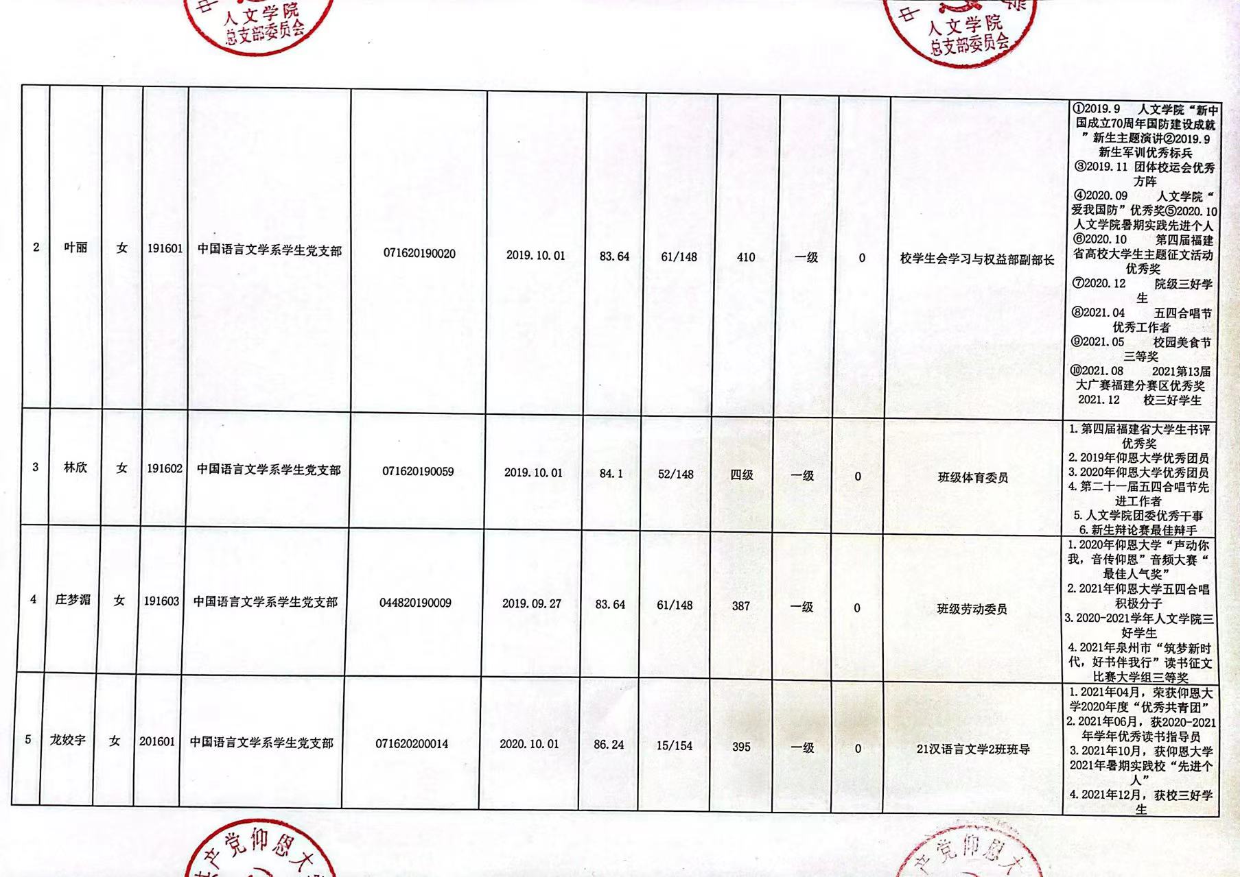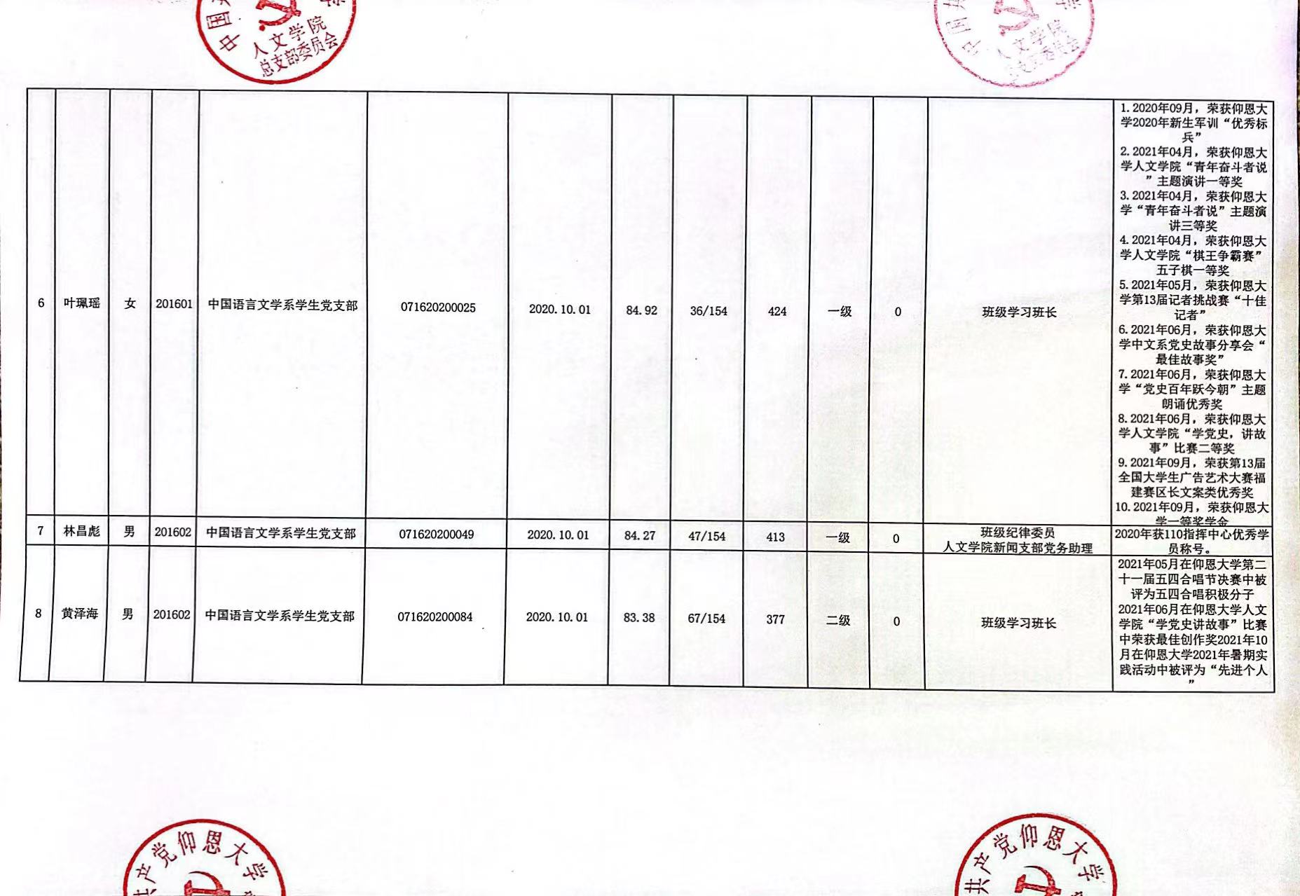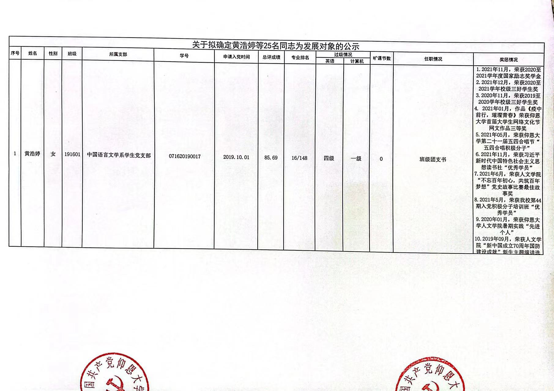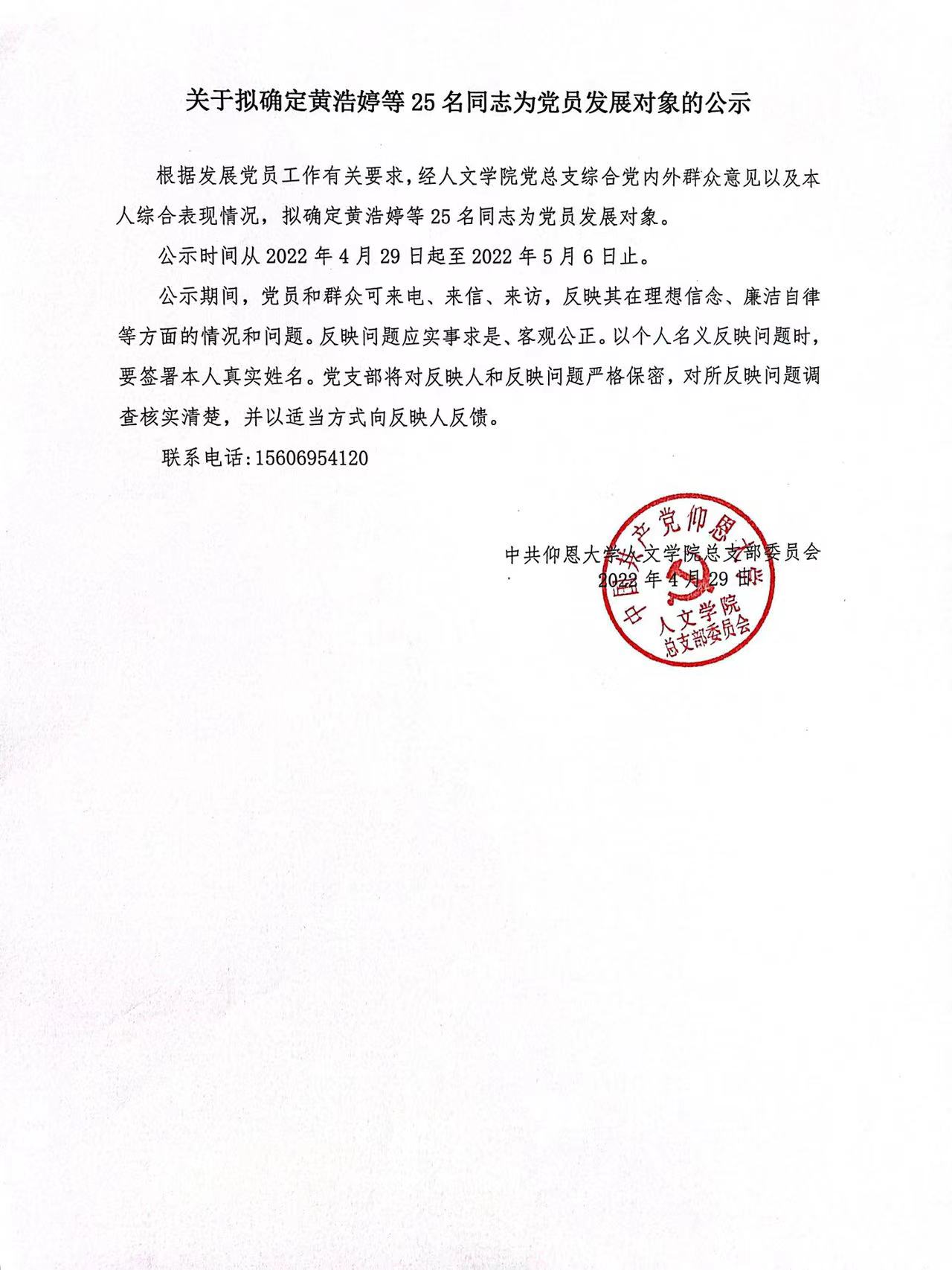 根据《中国共产党发展党员工作细则》及中共泉州仰恩大学党委党员发展要求,经中共beat365官方网站总支综合党内外群众意见以及本人综合表现情况,拟确定苏淑霞同志和黄浩婷等25名同志为党员发展对象。