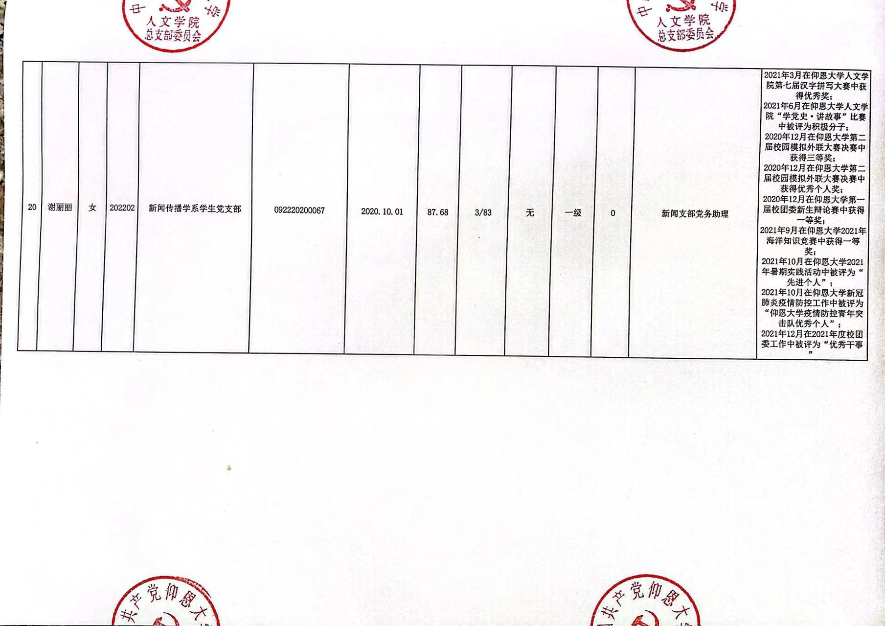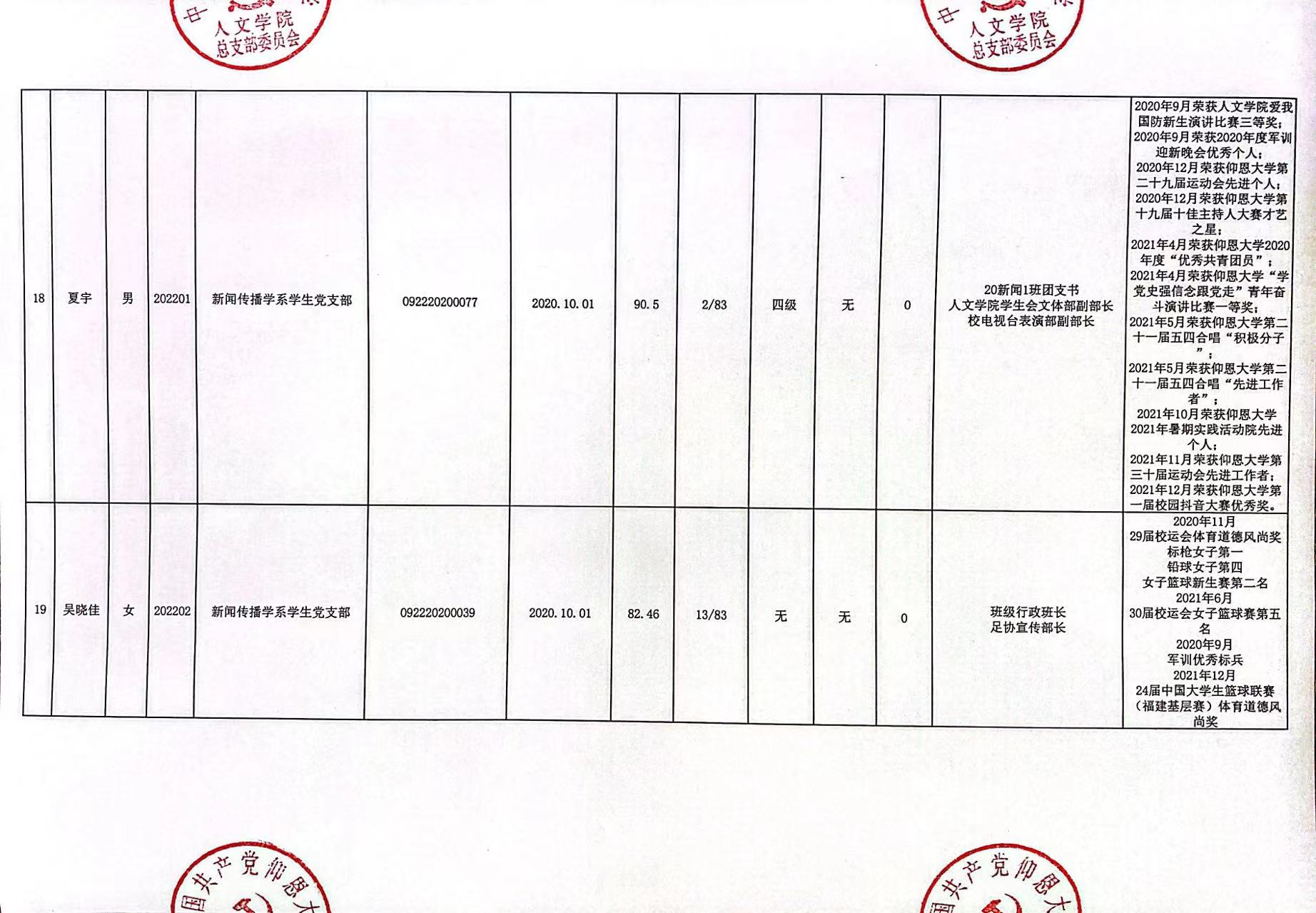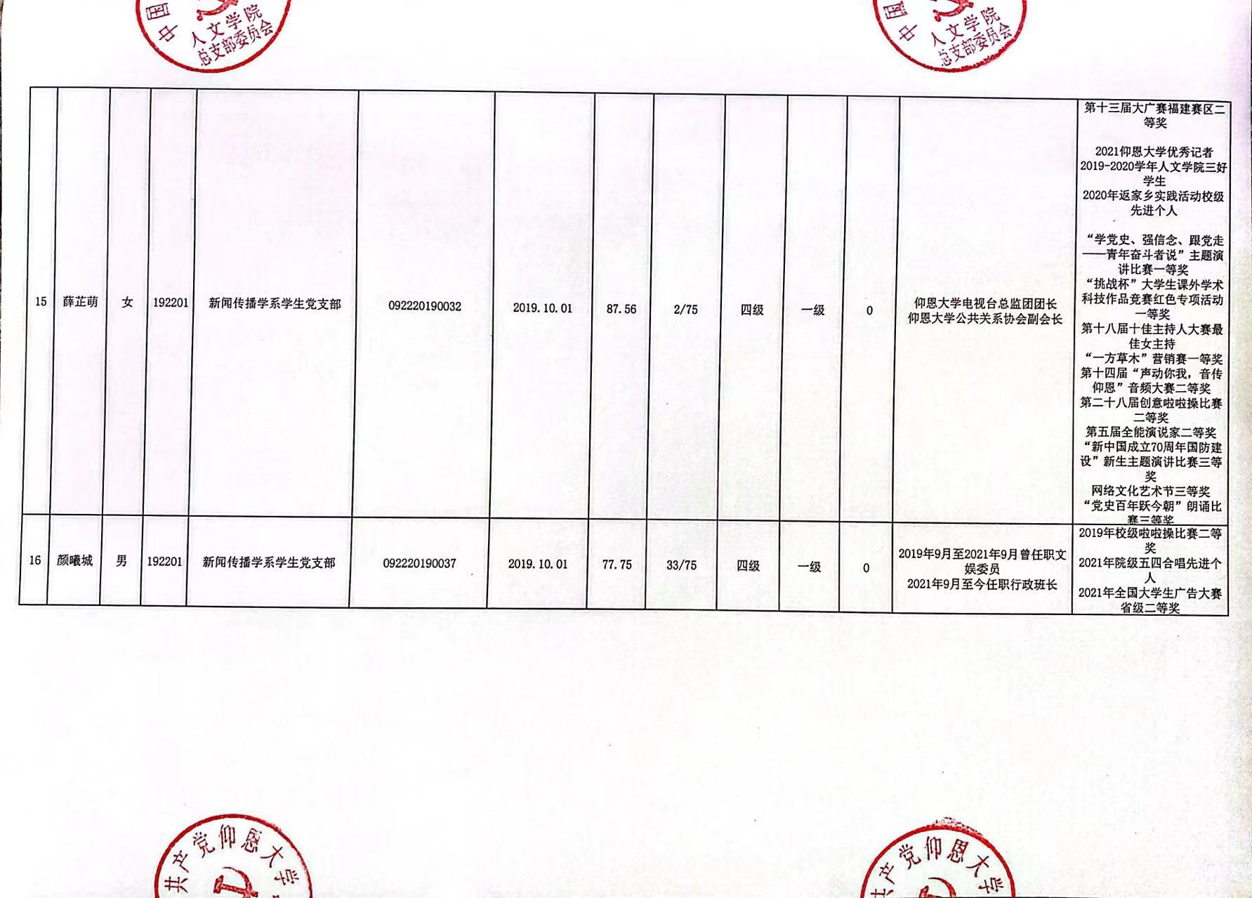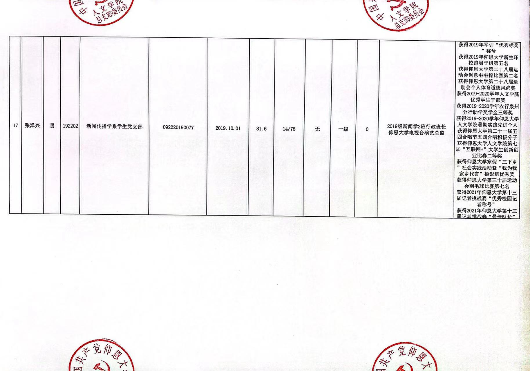 根据《中国共产党发展党员工作细则》及中共泉州仰恩大学党委党员发展要求,经中共beat365官方网站总支综合党内外群众意见以及本人综合表现情况,拟确定苏淑霞同志和黄浩婷等25名同志为党员发展对象。