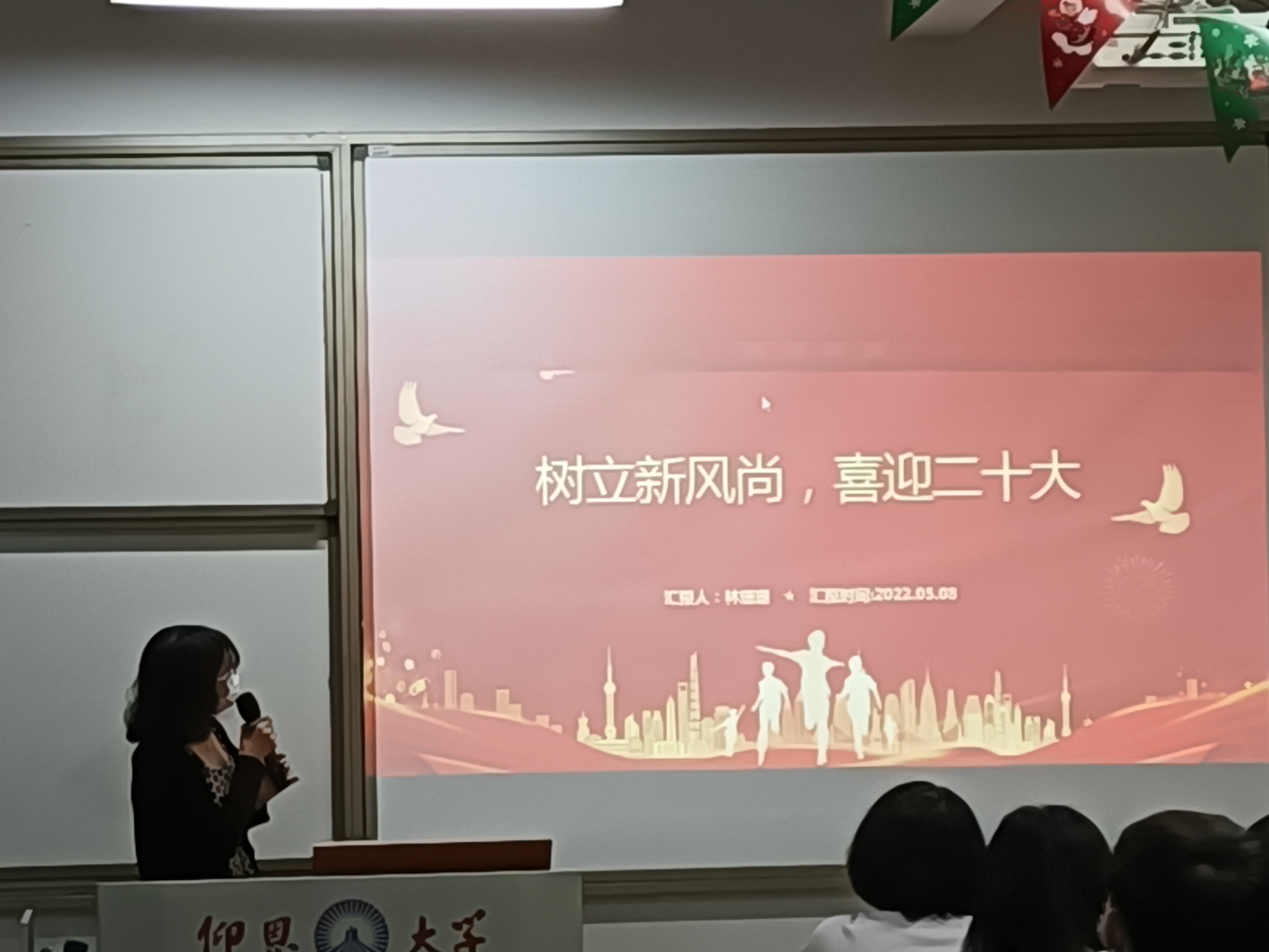 5月8日19:00,中国语言文学系学生党支部在仰恩楼B1-205召开“文明树新风,喜迎二十大”专题学习会。
