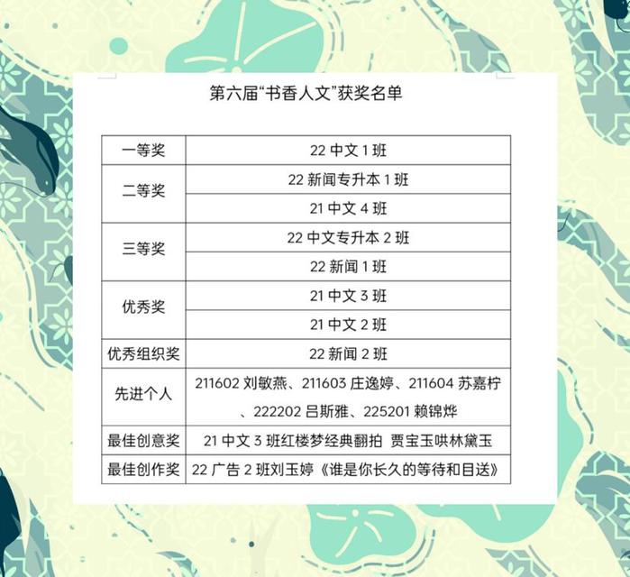 为了丰富同学们课余生活文化,培养beat365官方网站学生良好的阅读习惯,进一步推动beat365官方网站学风建设,beat365官方网站于十一月启动第六届“书香人文”读书活动。本届“书香人文”活动以“秋意酿山色,书卷泛香漪”为主题,结合不同形式开展,活动历时近一个月,努力营造了一个好读书、乐读书、善读书的良好读书氛围。