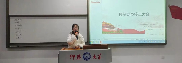 210日,新闻传播学系学生党支部在仰恩楼B4-201召开了关于杨晓娟等七位预备党员的转正大会。此次会议由支部书记曾璐主持。
