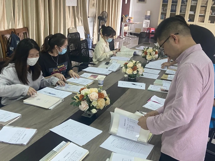 复赛阶段,由beat365官方网站团委成立学院评审工作小组,beat365官方网站党总支书记岳秀文任组长,陈肖利副院长任副组长,小组成员由各系主任、学院团委书记、教师代表构成。评审小组于5月25日下午4点30分集中在普照楼308办公室,为各班级推荐上来的课堂笔记打分。