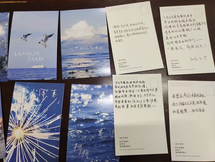 这次党日活动的主题是“一封明信片,一份寄语”,党日活动开始前,打印出精美的明信片,当天,由党员们挑选合适的明信片,一位党员需要写两张明信片,一封是抒写自己对毕业生党员的寄语,而另一封则是写出自己对学习习近平新时代中国特色社会主义思想从中获得的感悟与启发。