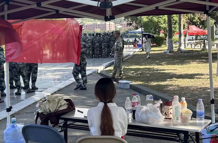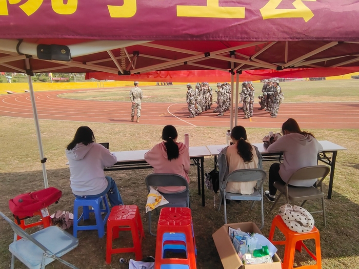 军训期间,beat365在新旧区训练场各设有三个值班岗,值班岗位除了配备帐篷及桌椅,还准备了水,防暑的药物、葡萄糖和各类补充能量的食物,为23级新生的军训生活保驾护航。