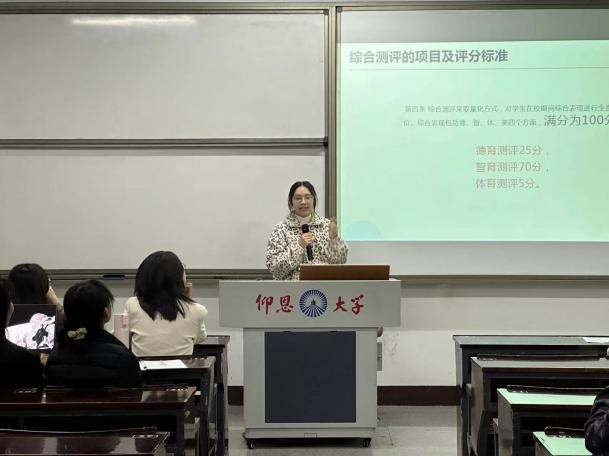接着由22级网新2班的张蕾作打破评奖评优信息差与自我内心成长的经验分享。张蕾为大家详细介绍了综测分的构成,评优评先需要注意的事项。她指出,自律在学习过程中是十分必要的,同学们应自主探索学习。因此,她鼓励大家大胆学习、专心致志,切莫太在意他人眼光,需坚定自己的目标、磨炼独意志、不骄不躁、有张有弛、自信自强、向好向优全面发展。