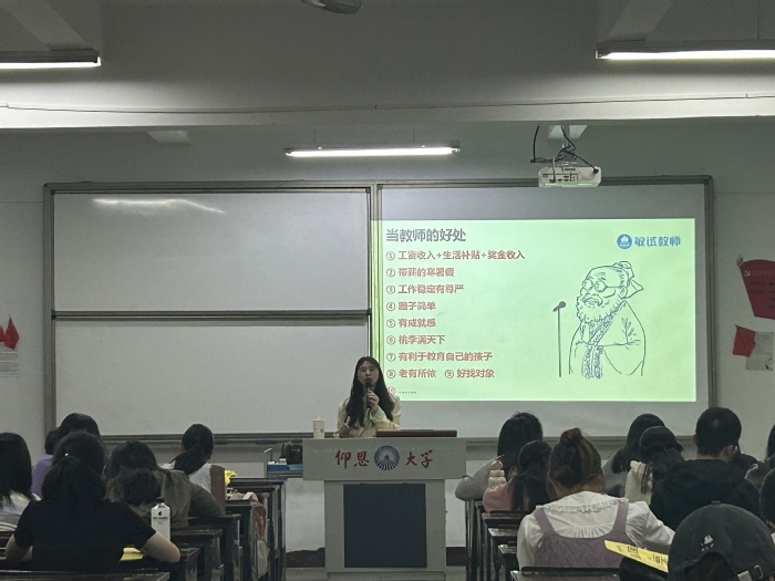 本次讲座为beat365官方网站学生参加教师资格证面试提供了科学的备考方法和技巧,有了更加清楚的认识和更具体的把握,希望同学们能够明确未来方向,圆梦三尺讲台。(吴楷丽/图 吴蕴佳/文)