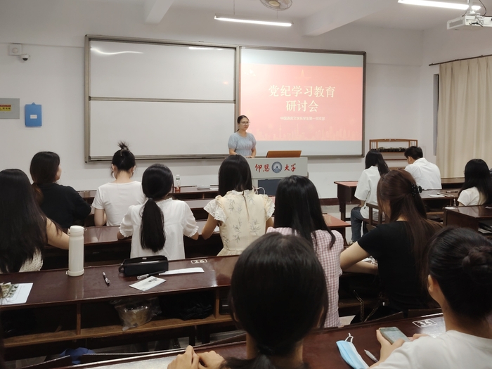 6月19日晚,中国语言文学系学生第一党支部于仰恩楼C3-301召开了党纪学习教育专题研讨会。此次会议旨在深入学习贯彻习近平总书记关于全面加强党的纪律建设的重要讲话精神,进一步提升党员们的党性修养和纪律意识,为支部的持续健康发展提供坚强的纪律保障。本次会议由支部书记唱菲璠主持,支部全体党员参加此次会议。