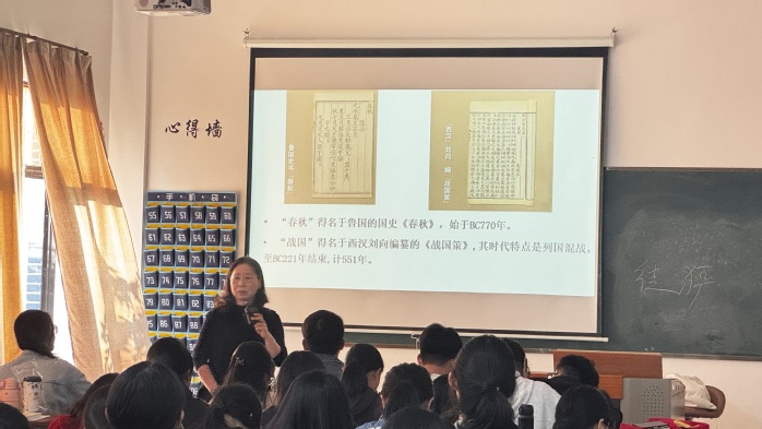 课程中,宋馥香老师运用文献资料详细讲解了西周的政治制度与春秋时期的变革。此外,老师还对所教授的内容进行了小结和思考,以具体历史案例为依托,深入剖析这一时期政治、经济和文化的发展状况。课堂氛围活跃,学生们积极思考并参与讨论,对西周与春秋的历史变迁有了更清晰的认识。