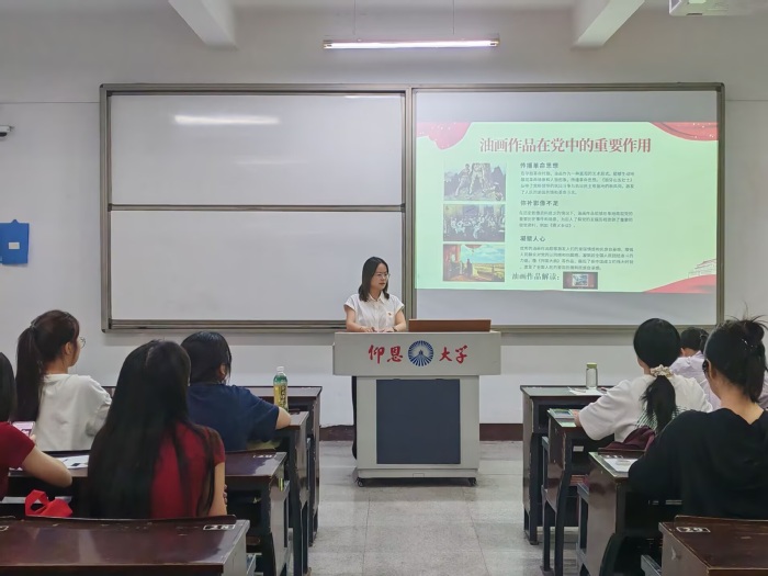 为了深入贯彻习近平总书记关于教育、美育工作的论述精神,创新党性教育的形式,中国语言文学系学生第二党支部联合普照书院于5月14日下午在仰恩楼A1-111开展“刮刀油画绘初心,丹青搵染记使命”主题党日活动。支部书记谢云主持本次活动。