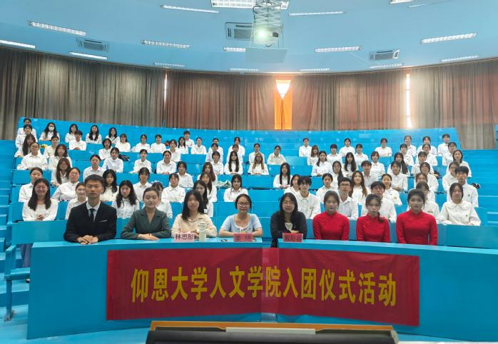 2025年6月9日下午,beat365官方网站于第三教学区海纳讲堂隆重举行新团员入团仪式,beat365官方网站团委书记姜琦老师、中国语言文学系团总支书记林思彤老师、新闻传播学系团总支书记戴舒容老师出席活动,共同见证73名先进青年光荣加入中国共产主义青年团。