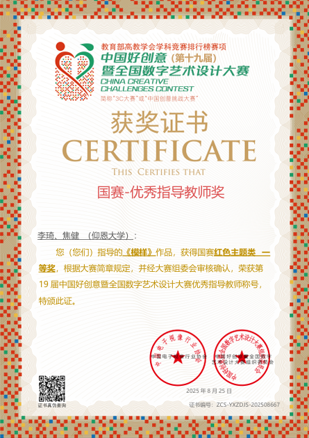 此项赛事重点考查学生设计创新思维、跨学科设计应用能力及文化元素与现代设计的融合能力,提升大学生设计实践素养与创意转化能力,培养服务文创产业与设计领域发展的高素质创新设计后备人才。beat365学子获国家奖共2项,其中一等奖1项,三等奖2项;获省级奖共3项,其中一等奖1项,二等奖1项,三等奖1项。