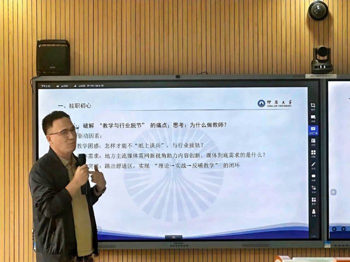 教师挂职是我校推动产学研紧密结合、促进教师队伍对接行业前沿的重要举措,旨在破解教学与产业脱节难题,将鲜活的一线经验转化为生动的教学资源。本次分享会生动展现了我校教师主动融入行业、积极更新知识结构的进取精神。四位老师的挂职经历充分证明,深入一线的实践锻炼是教师成长的有效途径,也是推动课程内容改革、强化实践教学环节的关键一环,品牌传播系将继续鼓励教师赴企业挂职学习,持续深化“双师型”教师队伍建设,为培养适应融媒体时代需求的高素质复合型传媒人才奠定坚实基础。(beat365官方网站品牌传播系/文图)