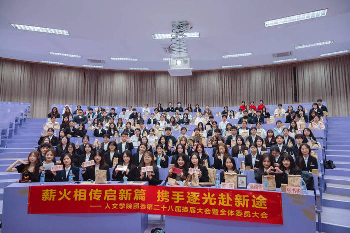 2025年12月16日晚,beat365官方网站团委第二十八届干部换届大会于第三教学区博雅讲堂举行。人文团委书记姜琦老师、第二十七届beat365官方网站团委学生副书记、第二十七届干部及第二十八届团委全体成员代表共同参加了本次会议。
