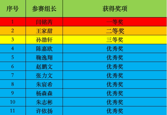 一分耕耘,一分收获。各参赛小组的付出也都获得了相应的回报。现将本次比赛的获奖名单公布如下。