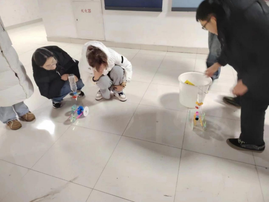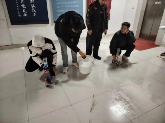 此次比赛共有12组队伍报名,11组队伍成功参赛。评委由关鹏老师和王建明老师担任。参赛选手们使用自己设计的水动力小车在规定的赛道上直线行走,行驶越远成绩越好。